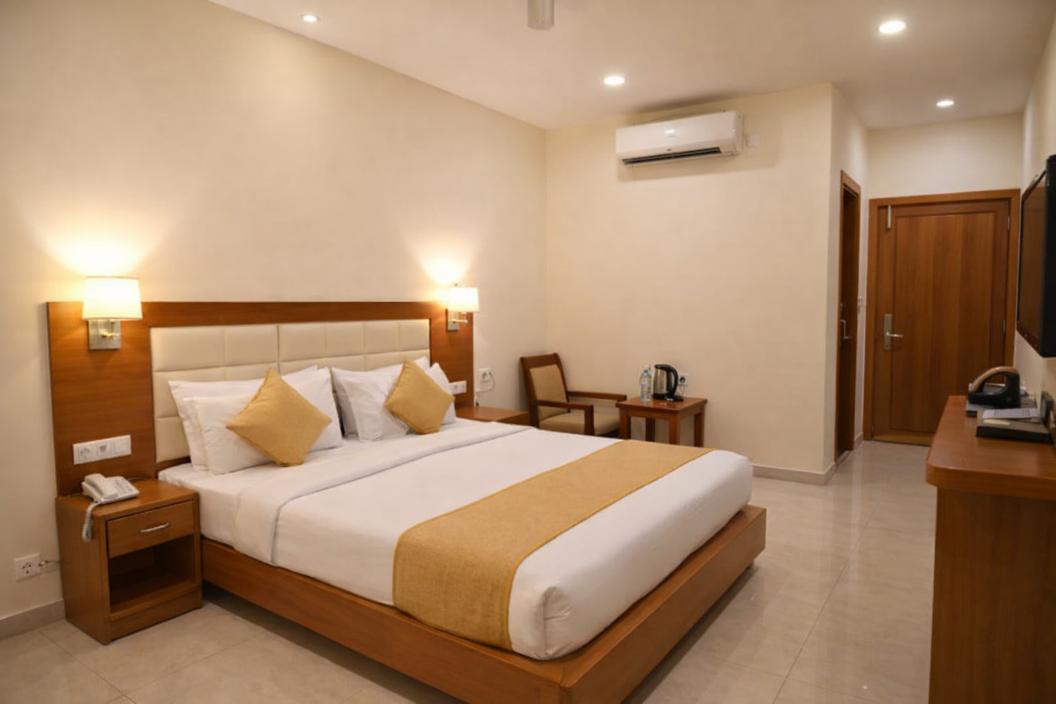 Our hotel offers clean and spacious rooms with modern amenities including free WiFi, 24/7 room service, attached bathrooms, and comfortable bedding to ensure a pleasant stay.